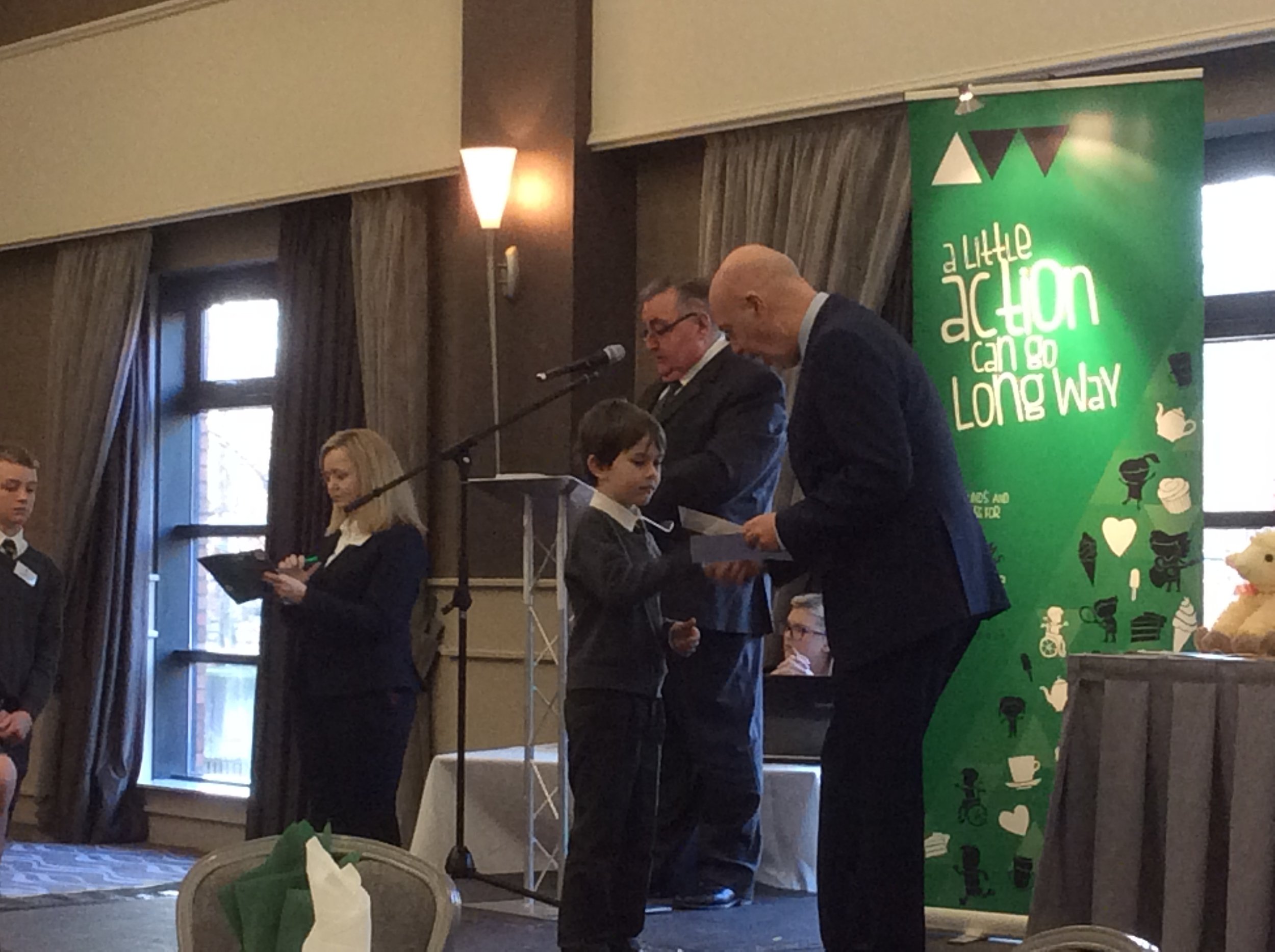 Matthew (P3) was presented with a plaque as he was the runner up top fundraising pupil in NI. Holywood Primary School was named the Eastern Area winners for the most money raised.