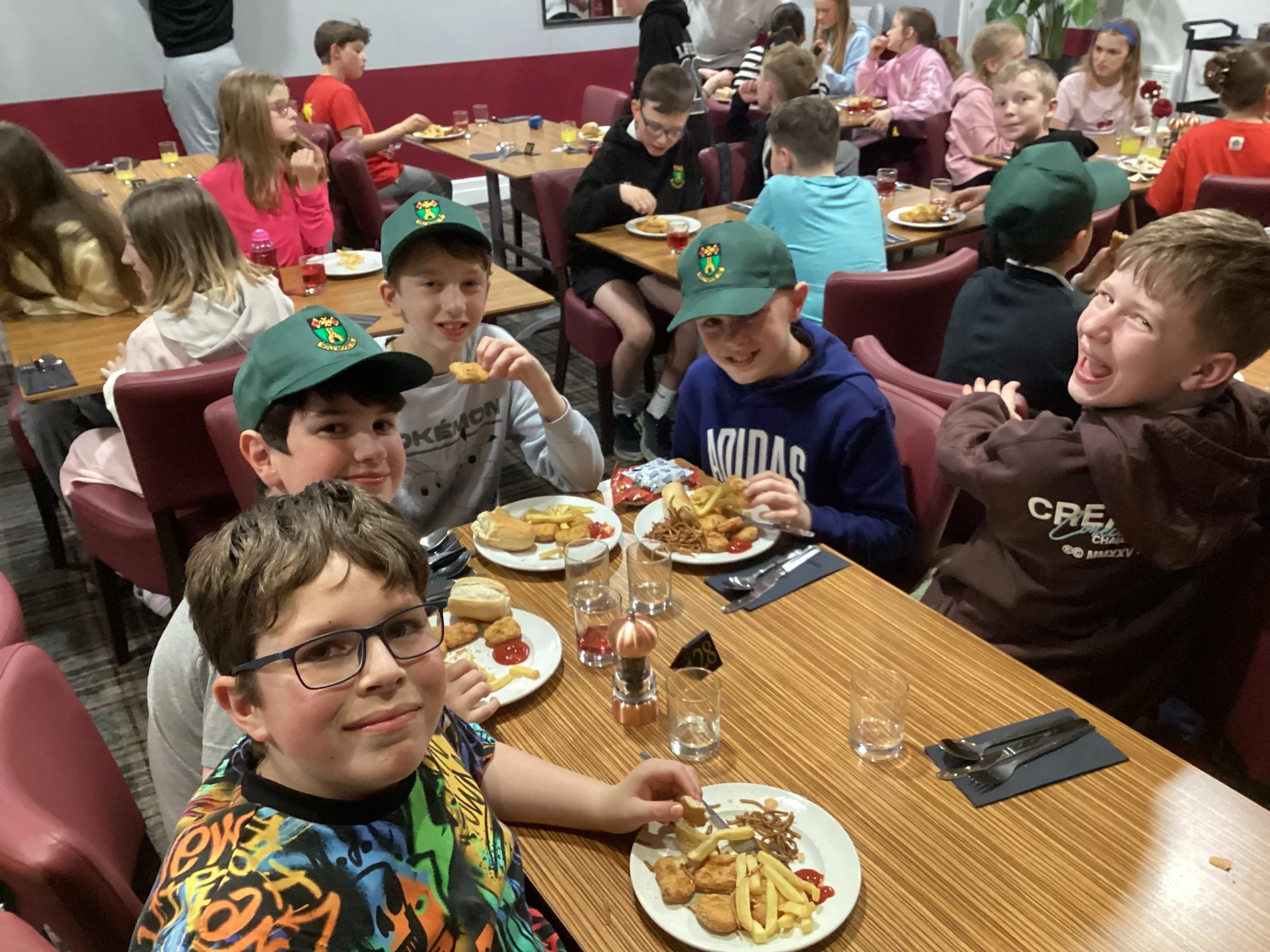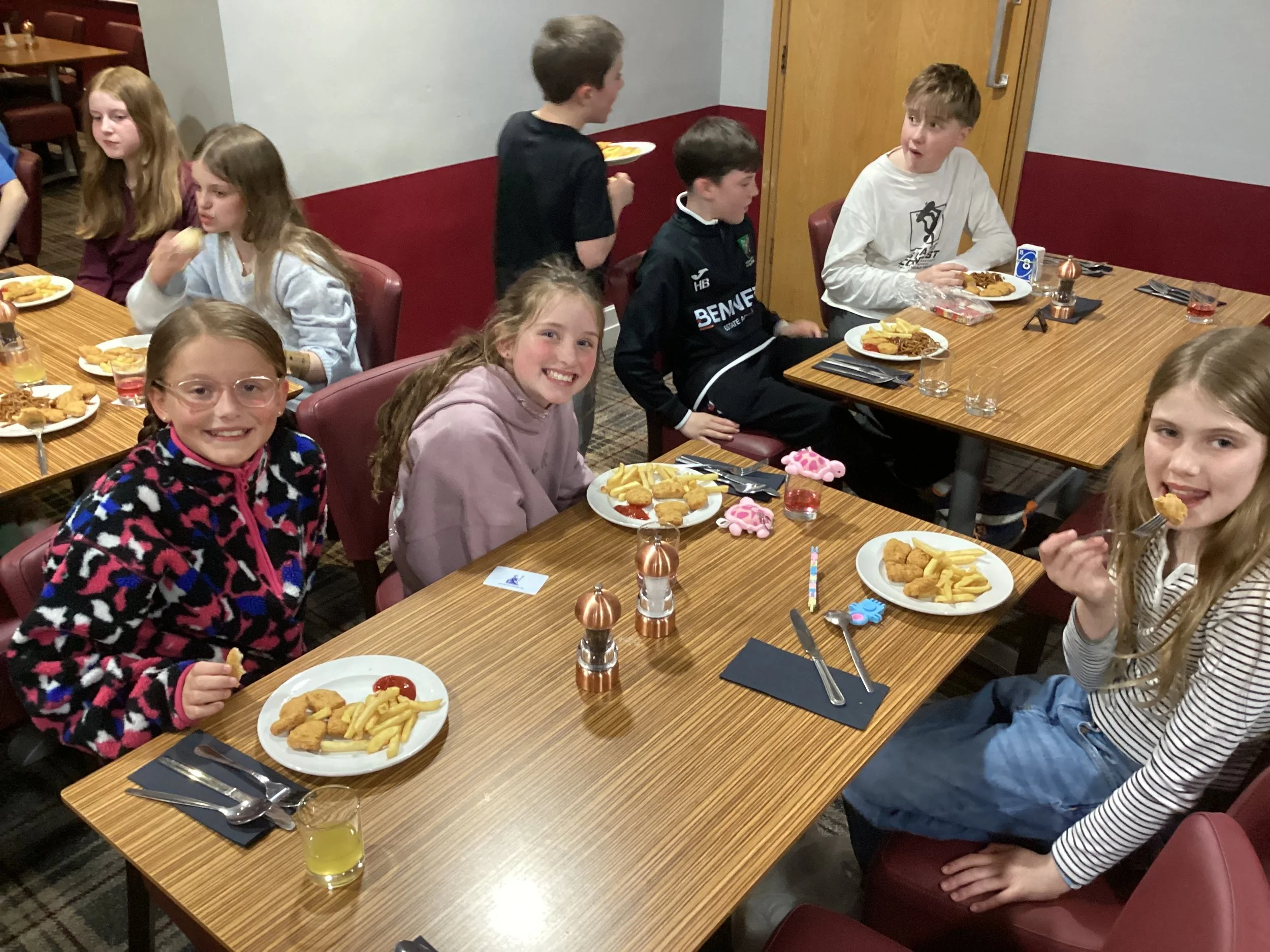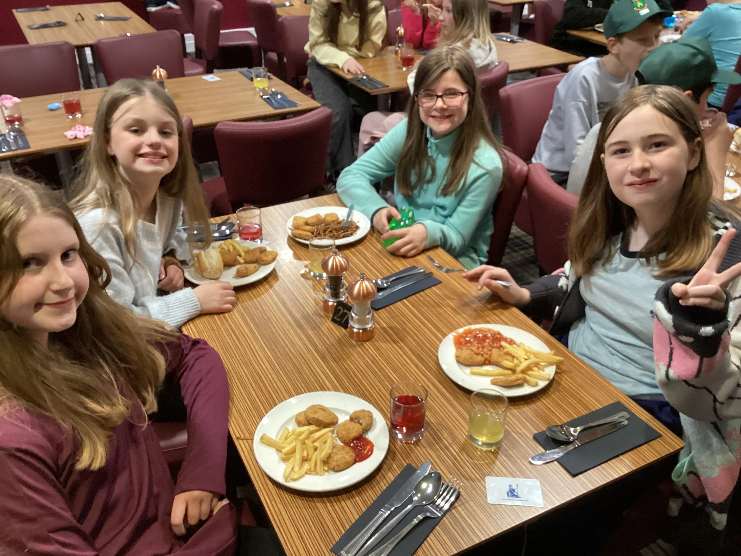 Tonight’s dinner was chicken nuggets, chips and beans with some vegan sausages and burgers on the side. One pupil even told Dr Walker to hire that chef because these nuggets are better than McDonald’s! This was followed by a selection of delivery cakes.